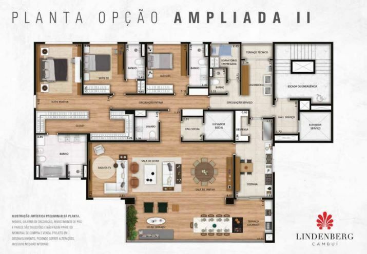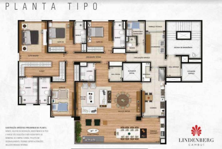 Personalização das unidades ( custo extra por conta dos clientes); infraestrutura para instalação de ar condicionado nas suítes , salas e varanda gourmet;