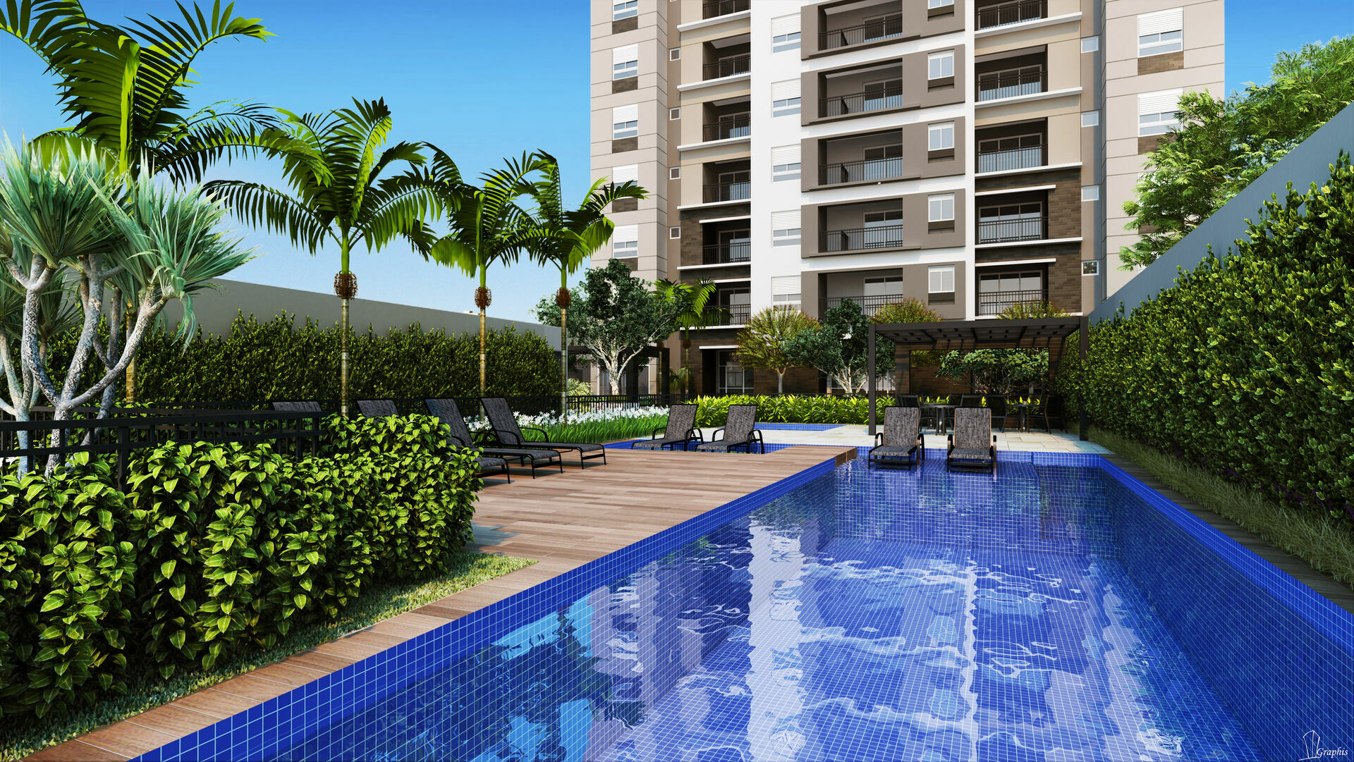 Fachada contemporânea, estilo moderno e um belo paisagismo, áreas comuns entregues equipadas e decoradas.