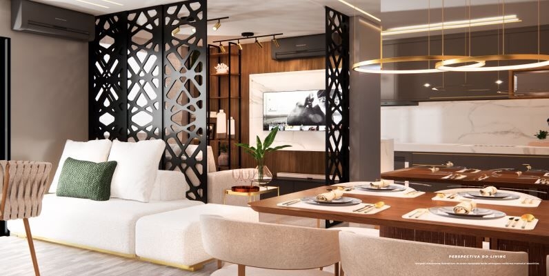 Apartamentos de 3 dormitórios, sendo 1 suíte, e 77,59 m², total de 64 unidades;