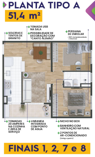 Unidades de 2 dorms com 1 vaga - 52 m²