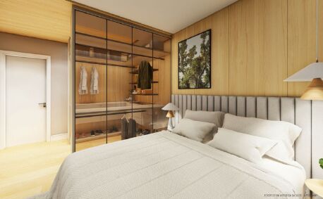 Unidades com 2 ou 3 suítes, metragens unidades tipo: 82, 113, 114 m² e unidades gardens: 158, 214 e 217 m².