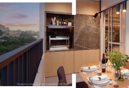 Área privativa de 60 e 76 m², unidades com sacada que poderá receber churrasqueira para desfrutar de momentos de lazer e relaxamento.