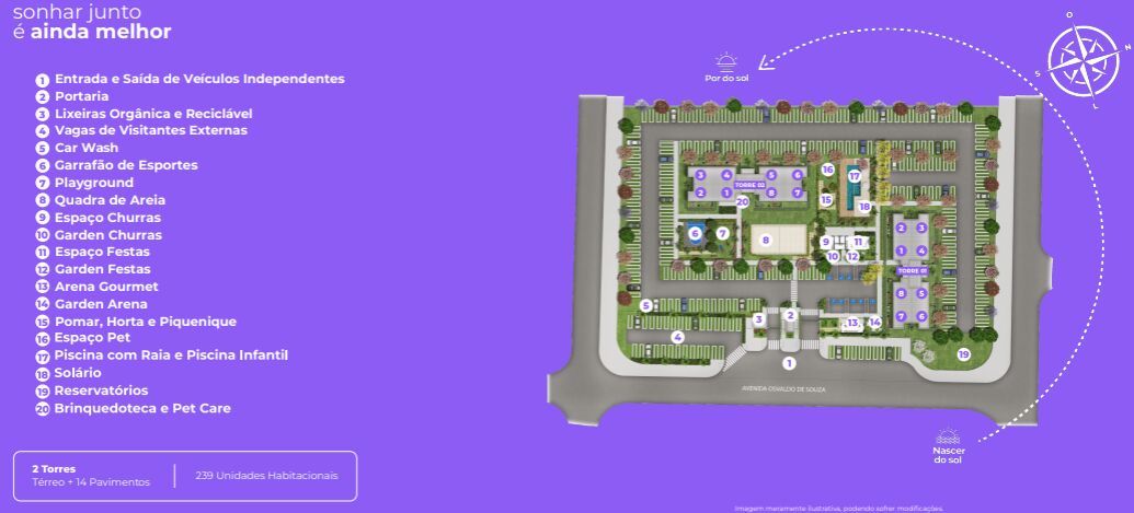 Tá procurando um cantinho só seu? Esse empreendimento conta com unidades de 2 dormitórios e 1 vaga, com 40 e 41m² de área privativa, conta com unidades gardens.
