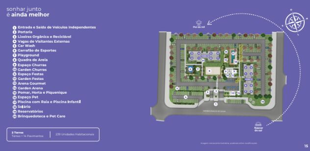 Condomínio repleto de opções de lazer como brinquedoteca, churrasqueira, espaço gourmet, playground, quadra de areia, salão de festas, piscina e solarium, você e sua família terão tudo o que precisam sem sair de casa.