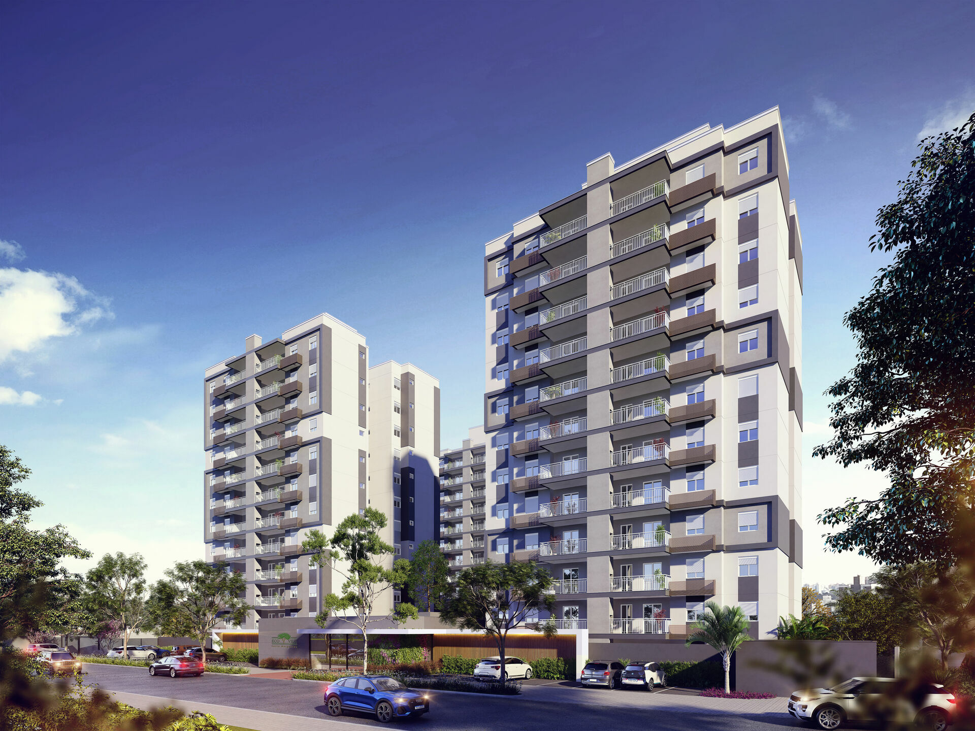 Apartamentos tipo com 73 a 97 m², também contará com unidades garden de 73,66 m² + 18,42 m² jardim = 92,08 m² - incluso 2 vagas e 83,48m² + 15,53 m² jardim = 99,01 m² .