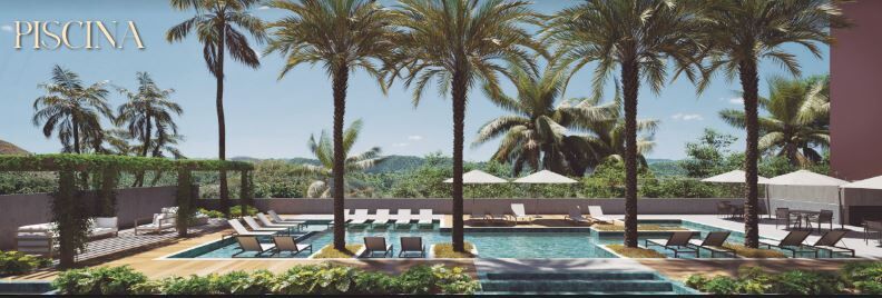 Lazer completo: espaço coworking, sala de jogos, mercado, espaço beleza, quadra beach tennis, salão de festas, pet place, espaço kids, piscina, academia e lavanderia coletiva.
